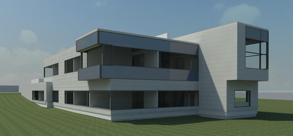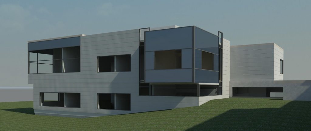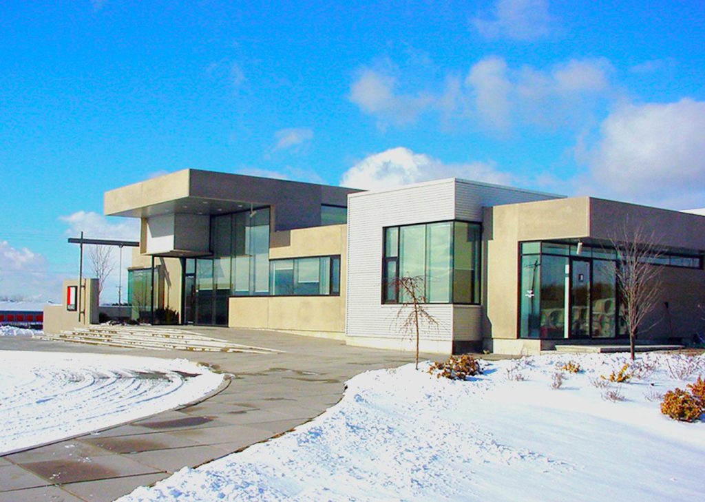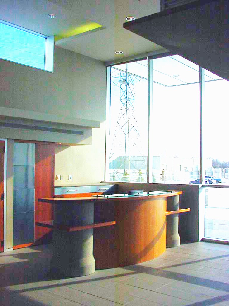 Munro Ltd. is a concrete sewer pipe manufacturer with some recent success and need for expansion. The existing offices have very tight quarters in the corner of the plant building. Instead of adding on, it was decided to do a stand alone office linked by technology to the plant. This gives much better control of the site both for trucks with deliveries and for people coming to the office. The building was conceived as a series of connections of unique shapes as a response to the idea of pipe connections. The owner, being in the concrete industry, decided to make the precast panels at the plant. The end result was a showpiece for the business as well as for the manufacturing.